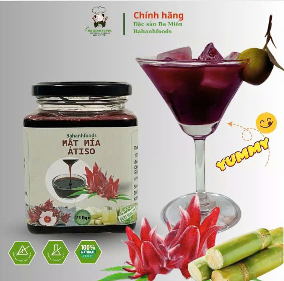 Siro mật mía atiso 100% thành phần từ mía tươi cô đặc cùng bông atiso đỏ. Vị ngọt thơm của mật mía kèm vị chua thanh của quả atiso, cho bạn một thức uống hoàn hảo.